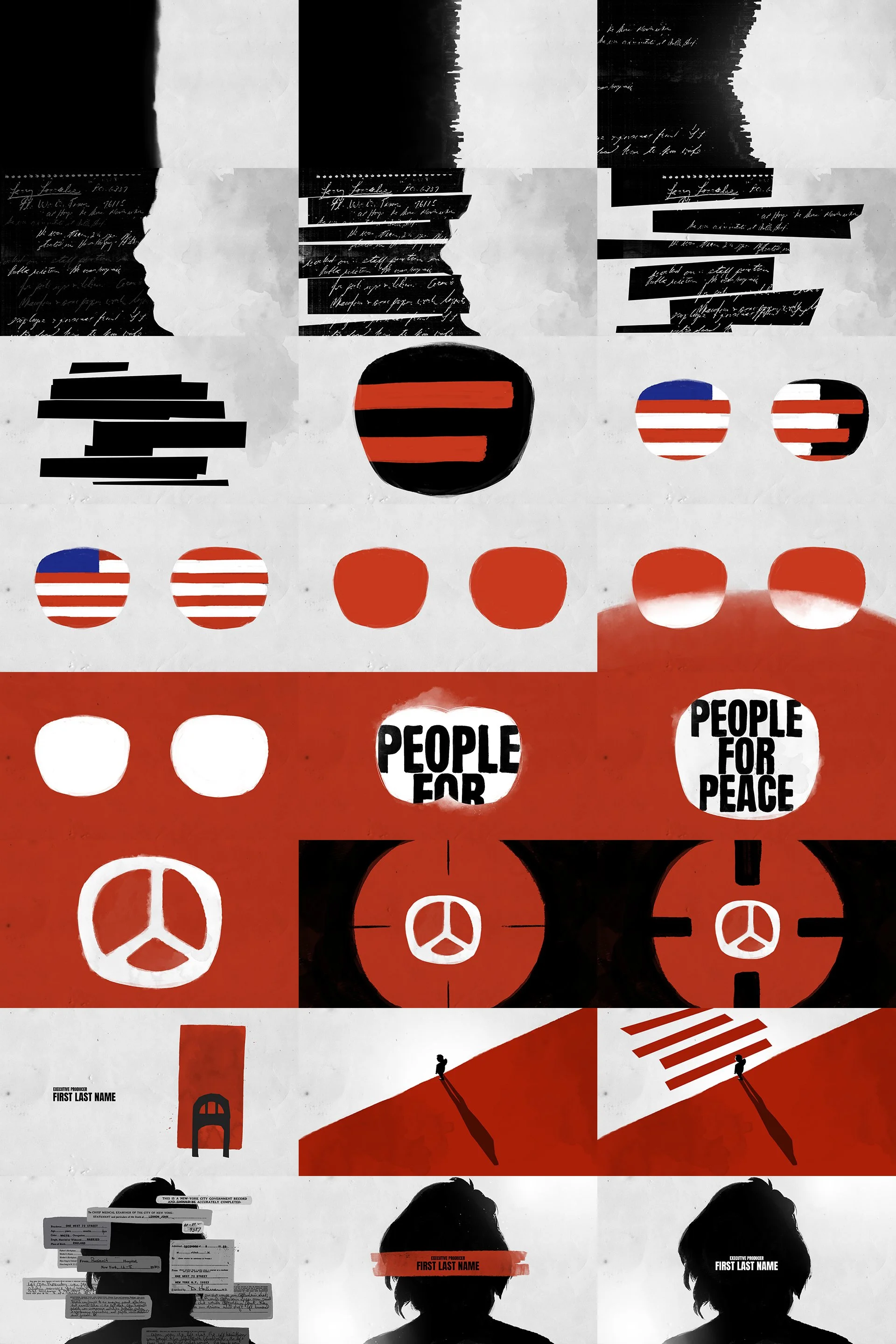 The main title design, illustration, and in-show graphics for John Lennon: Murder Without a Trial were developed as a unified visual system rooted in restraint, symbolism, and emotional weight. The goal was to support the gravity of the subject matter without sensationalizing it, using abstraction and reduction to create space for reflection. A limited palette and graphic simplicity allowed the visuals to feel investigative and somber, setting a tone that respects both the historical significance and the human impact of the story.